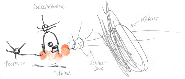Hubschrauber mit Schiessding und Kapuff